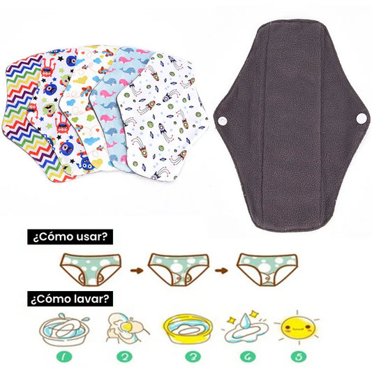 Set 5 Toallas Higiénicas Reutilizables Ecológicas De Fibra De Bambú