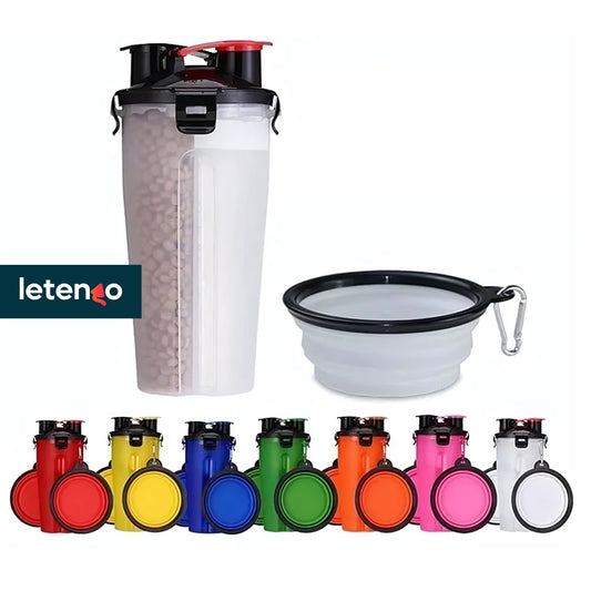 Termo Bebedero Comedero Mascotas Perro Portátil + Plato 2en1