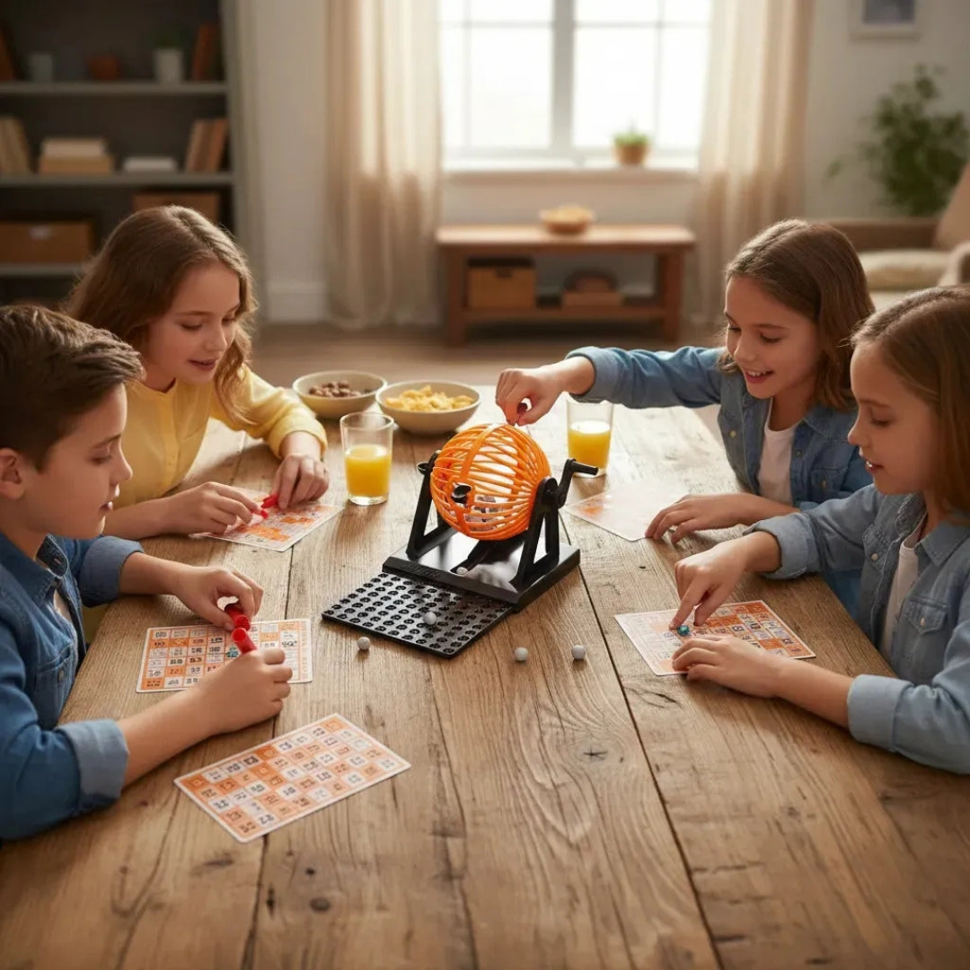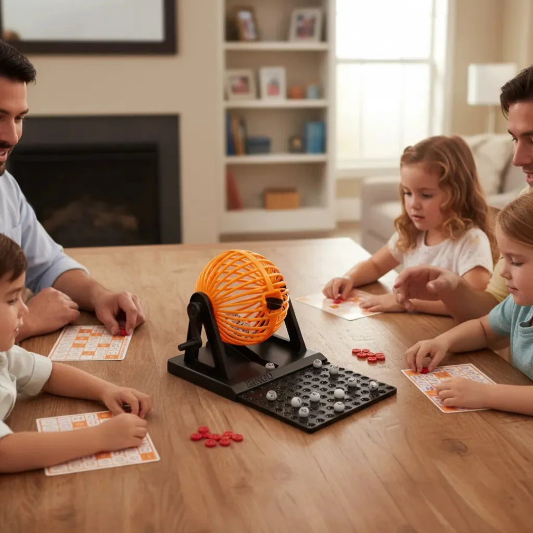 Disfruta de horas de entretenimiento con este set completo de Bingo profesional. Es el juego perfecto para integrar a grandes y chicos en reuniones familiares, fiestas, eventos escolares o tardes de juego con amigos.