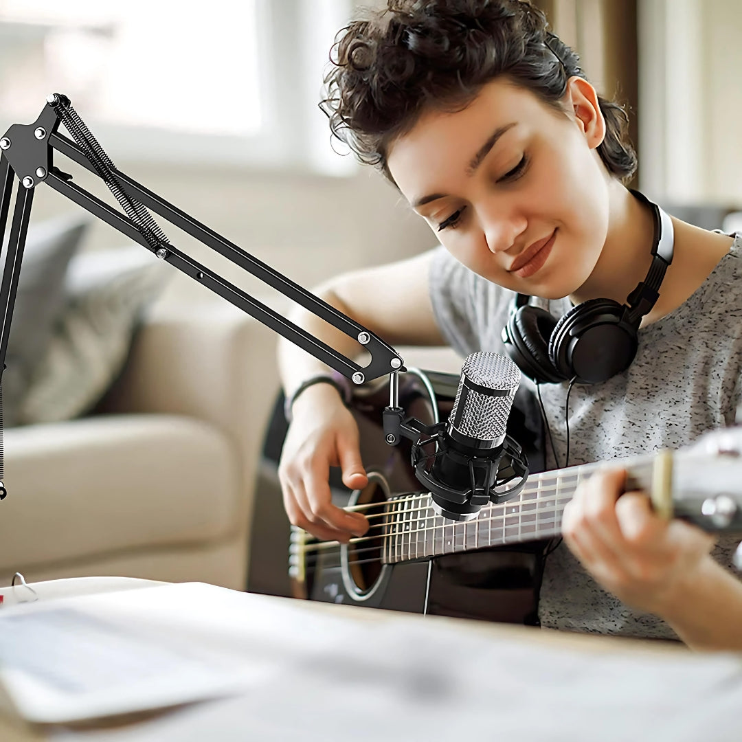 Duradero y resistente: hecho de marco de acero de alta calidad, clip de plástico ABS, soporte para micrófono, carga hasta 4.4 lbs.
