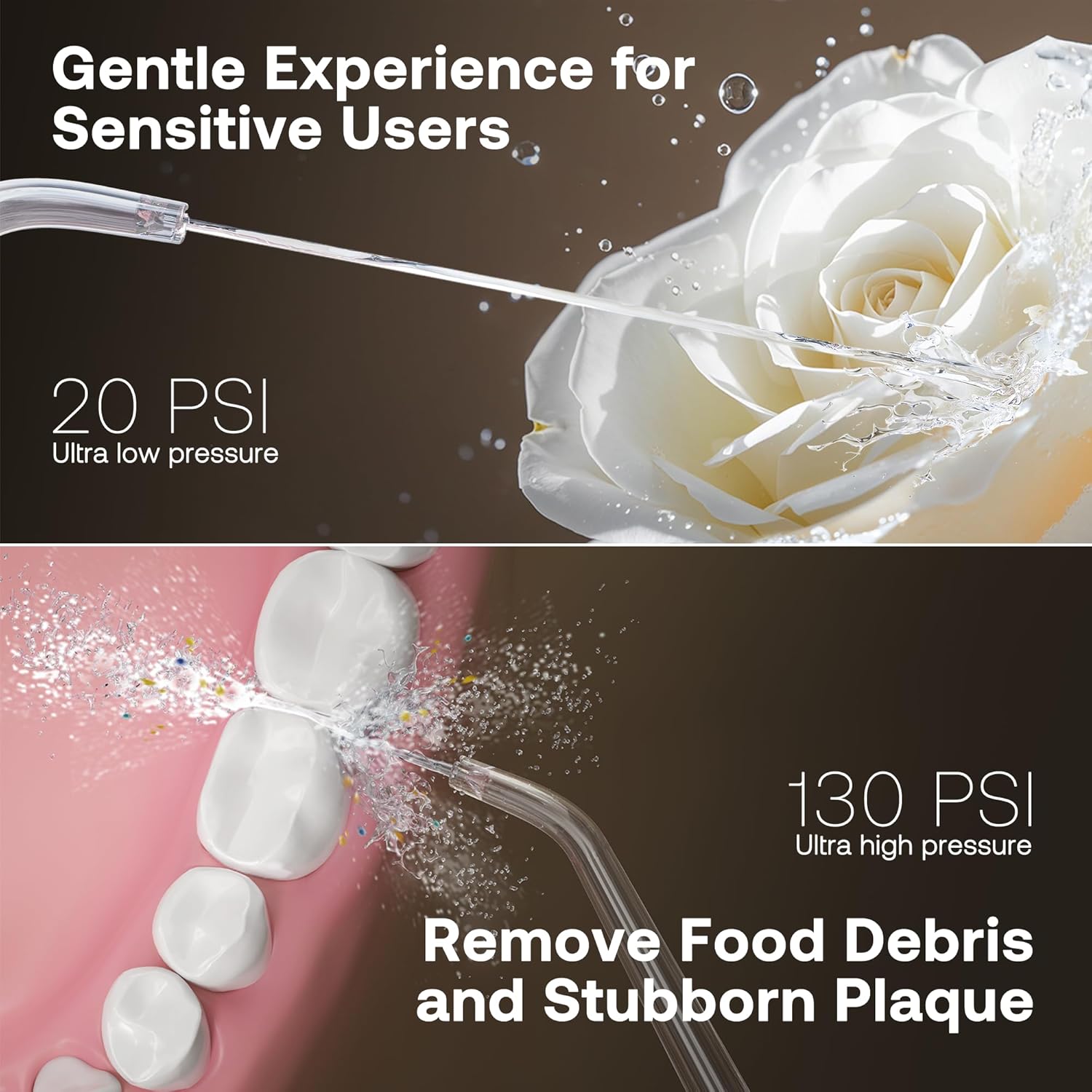 15 combinaciones de limpieza para satisfacer todas las necesidades de cuidado bucal: el irrigador dental de agua Bitvae con 3 modos y 5 intensidades ajustables, ofrece una experiencia de limpieza más cómoda y personalizada.
