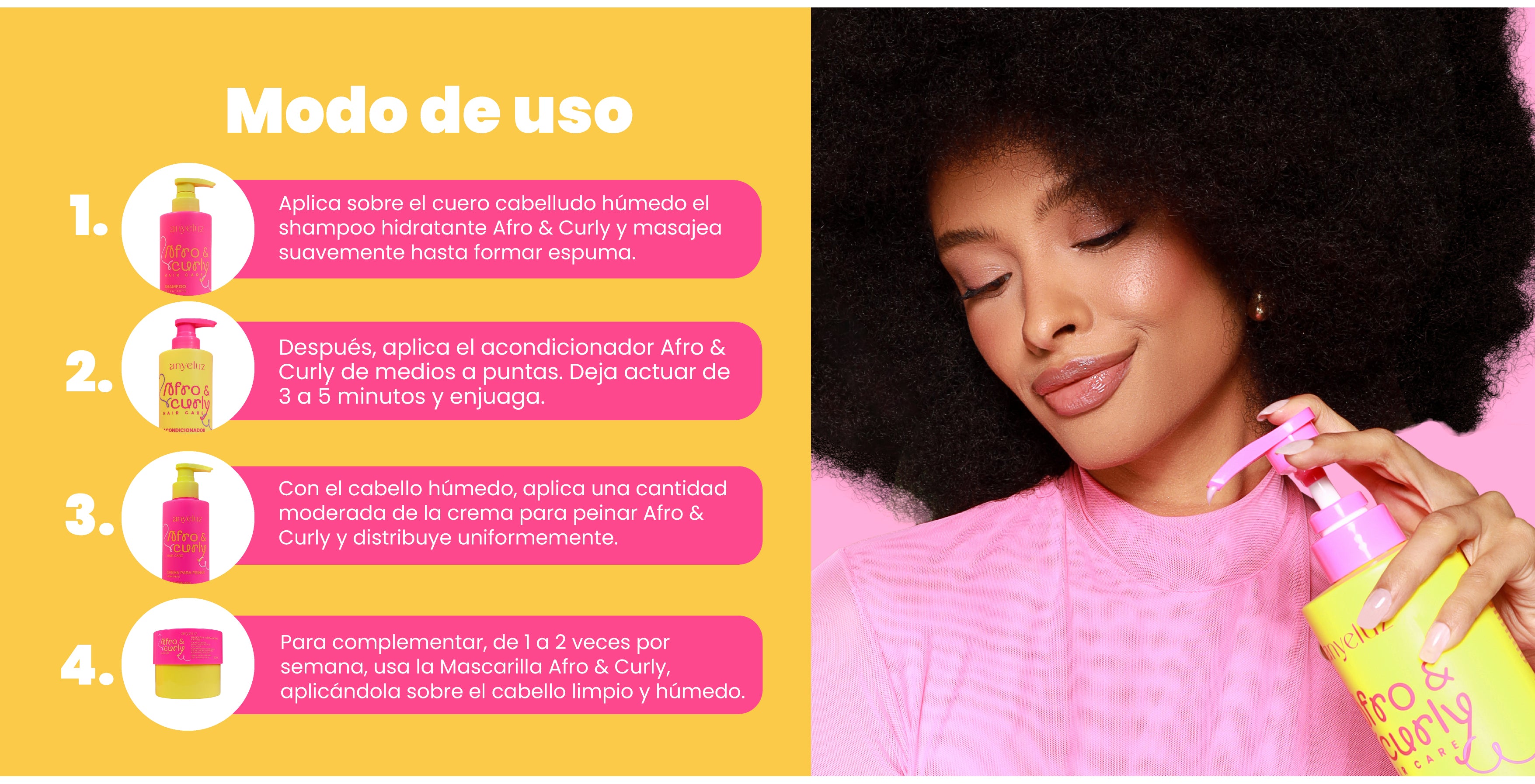 - Para mejores resultados, complementa tu rutina con toda la línea Afro & Curly.