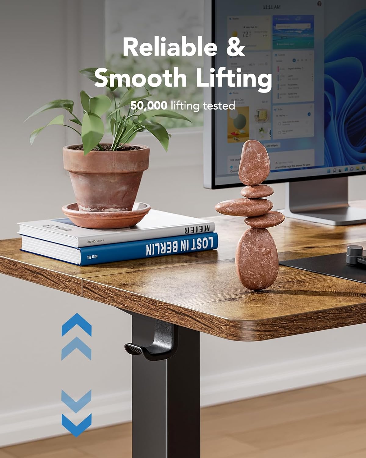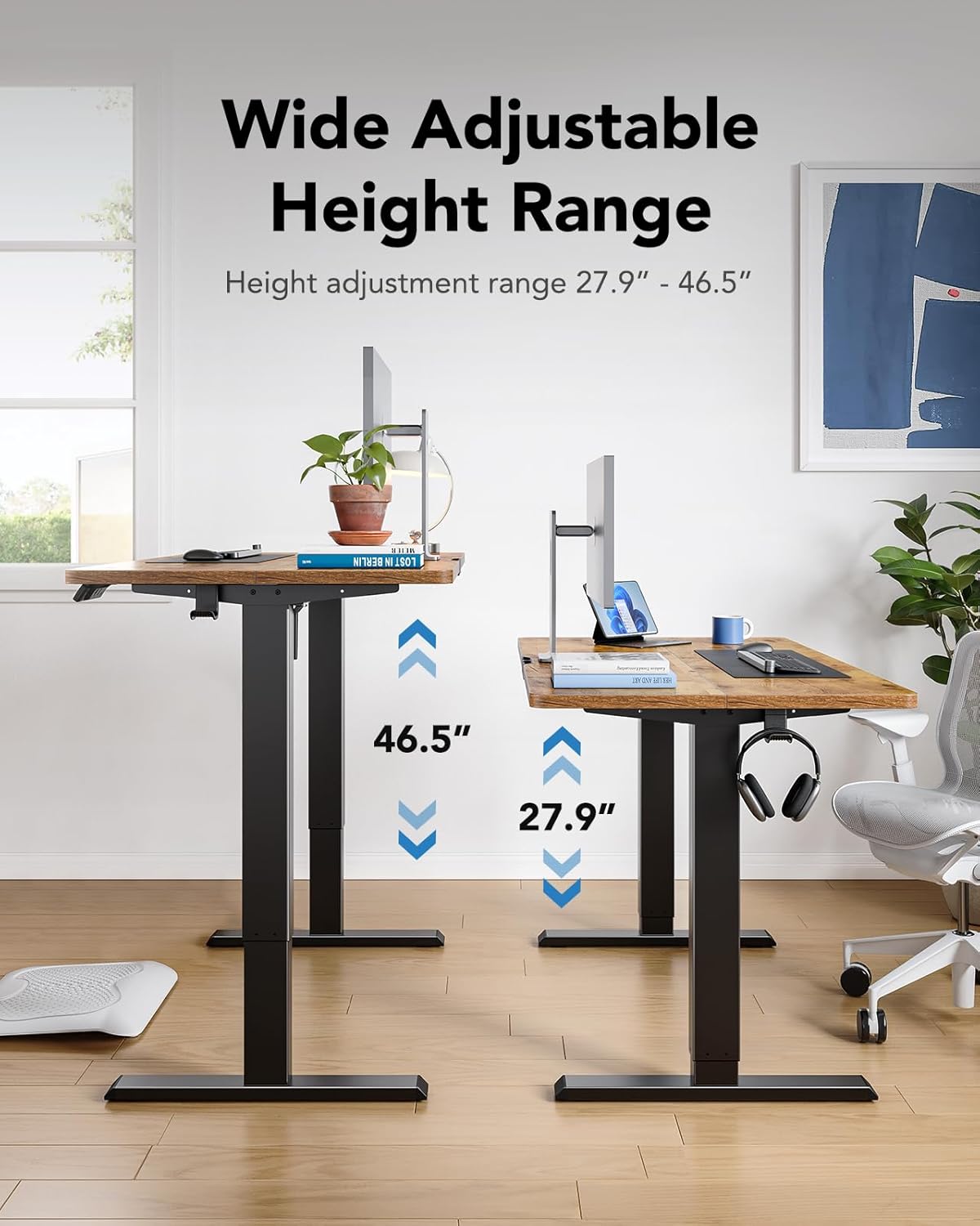 Ajuste de altura suave: selecciona libremente la altura del escritorio eléctrico de pie, desde 28.35 pulgadas a 46.46 pulgadas. Guarda tus tres ajustes favoritos y cambia suavemente entre ellos.