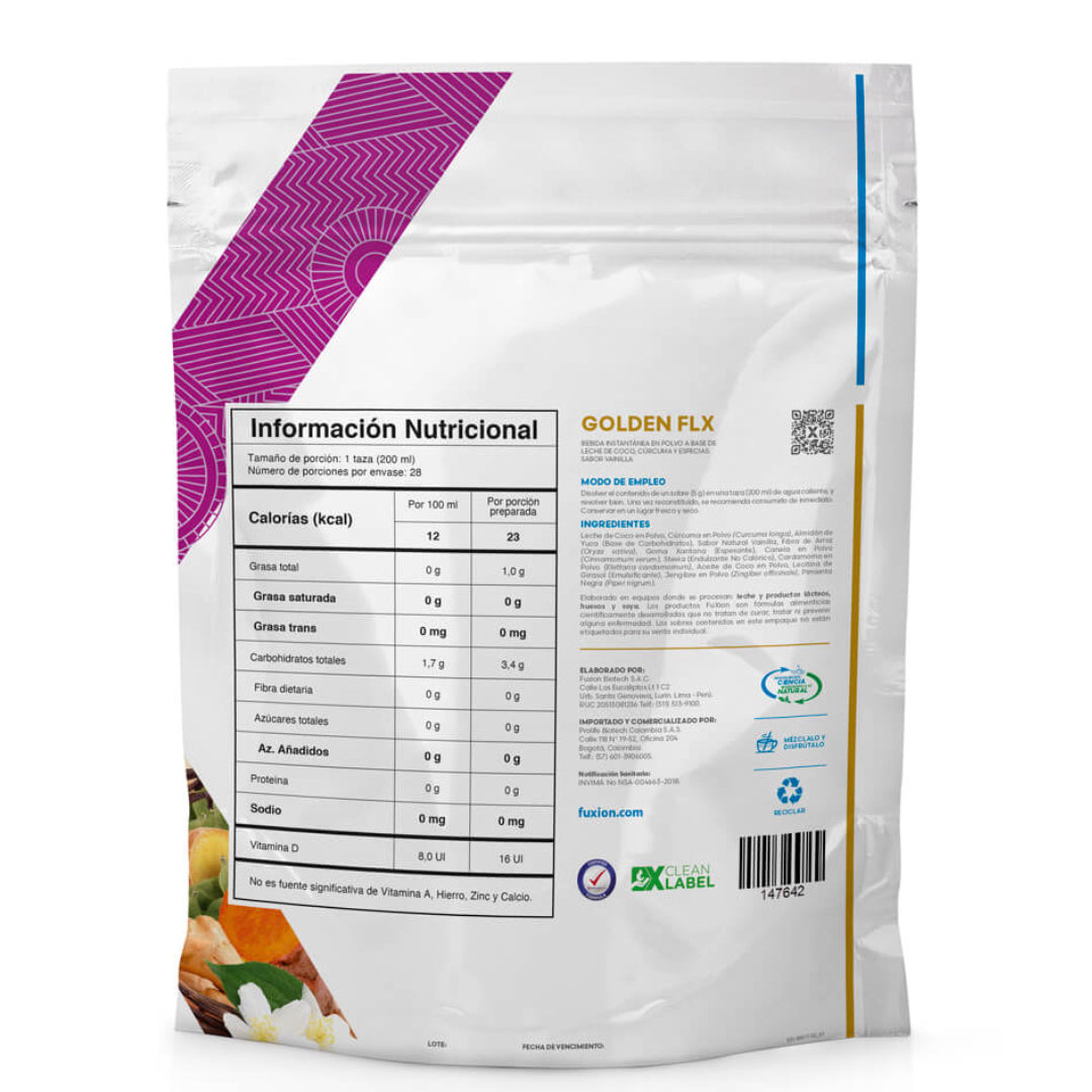 GOLDEN FLX es una deliciosa bebida inspirada en el tradicional “Golden Milk”, creada por FuXion para mejorar la flexibilidad de las articulaciones, desinflamarlas y fortalecerlas.