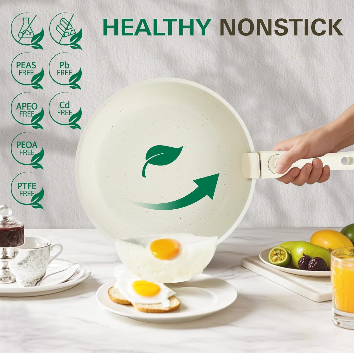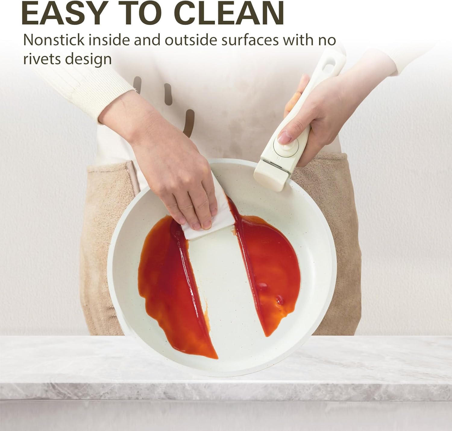 Rendimiento ultra antiadherente: el revestimiento de granito resistente a los arañazos mejora la durabilidad, ofrece un rendimiento antiadherente 5 veces mejor con un mínimo de aceite, asegura una liberación de alimentos sin esfuerzo, hace que cocinar sea más agradable