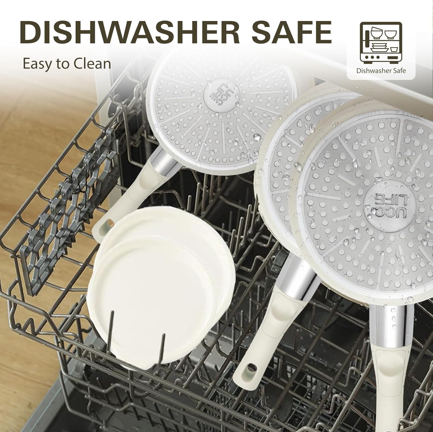 Fácil de limpiar: las propiedades antiadherentes reducen el uso de aceite y los residuos de alimentos, lo que hace que la limpieza sea fácil. Cualquier residuo se puede eliminar fácilmente con un simple enjuague o un paño rápido, si lo prefiere, también pueden ir en el lavavajillas, lo que facilita aún más la limpieza.