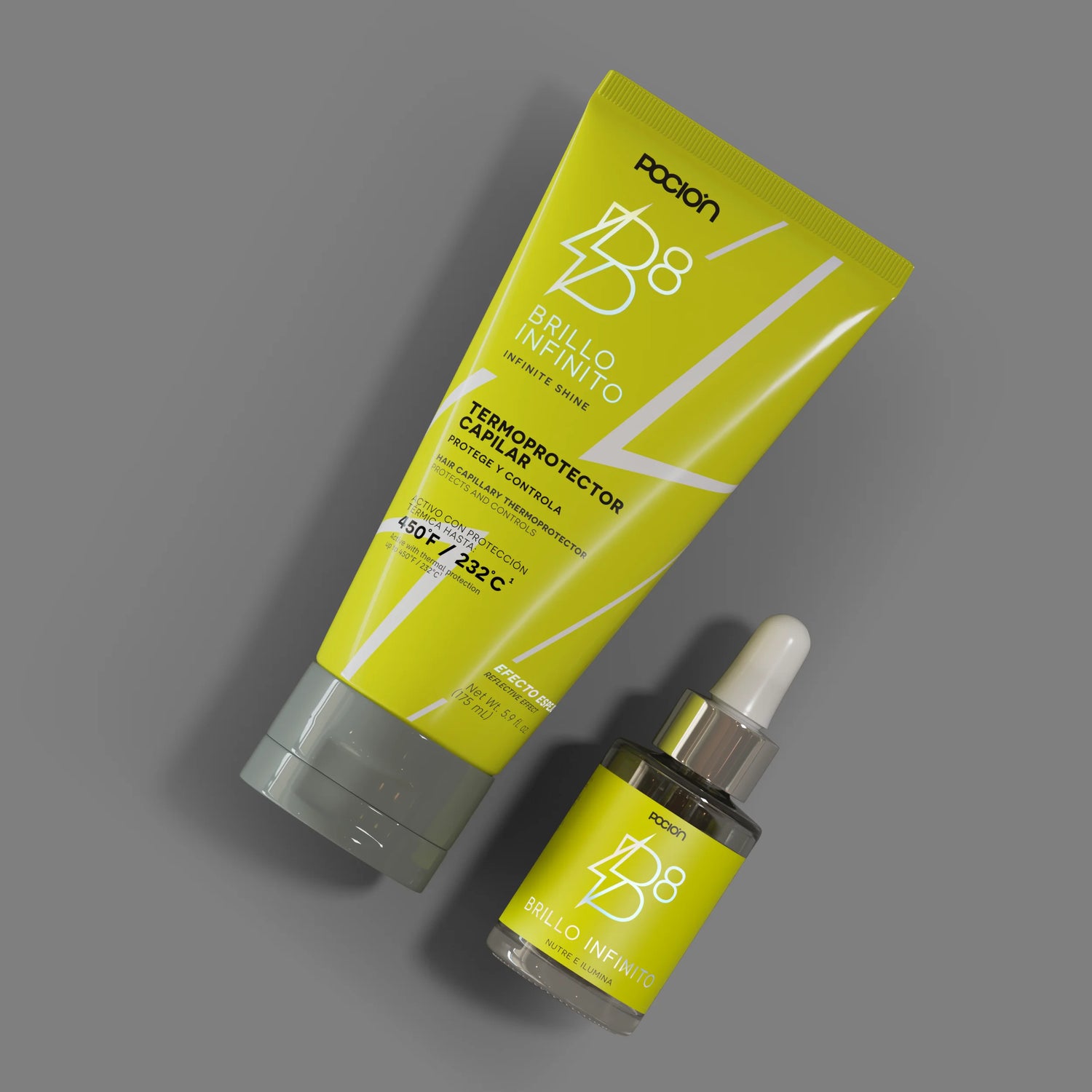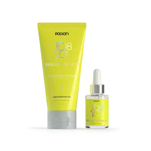 Finalizar con ÓLEO MULTIFUNCIONAL B8. Aplica un par de gotas enla palma de las manos y frótalas para una mejor distribución, aplícalo de medios a puntas en tu cabello.