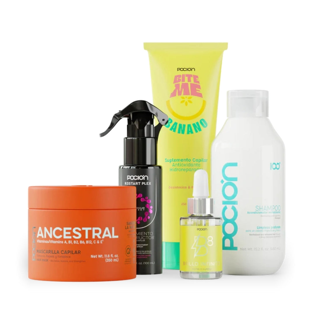 Incluye: Shampoo Reparación + Mascarilla Ancestral + Óleo B8 + R3start Plex + Bite Me.