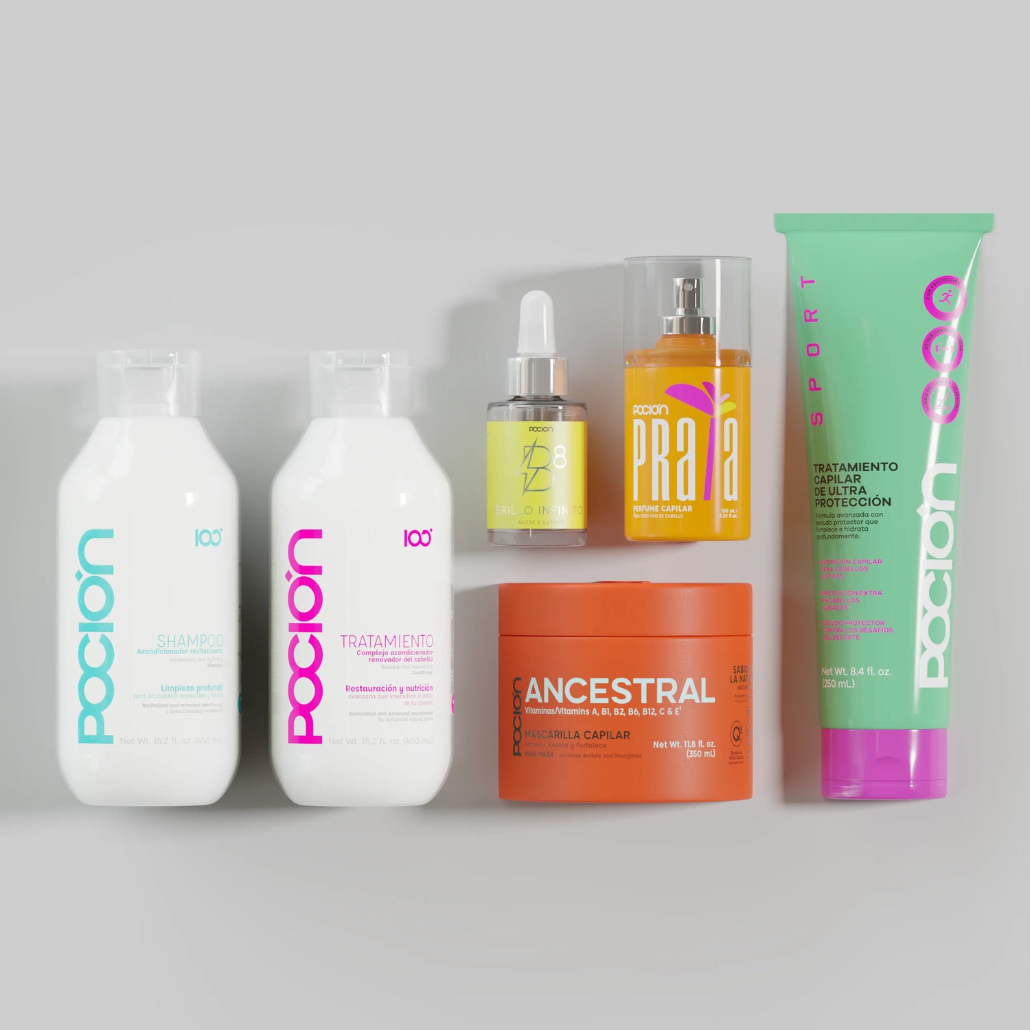 Incluye: Sport + Shampoo Reparación + Mascarilla Ancestral + Tratamiento Acondicionador + Óleo B8 + Perfume Capilar.