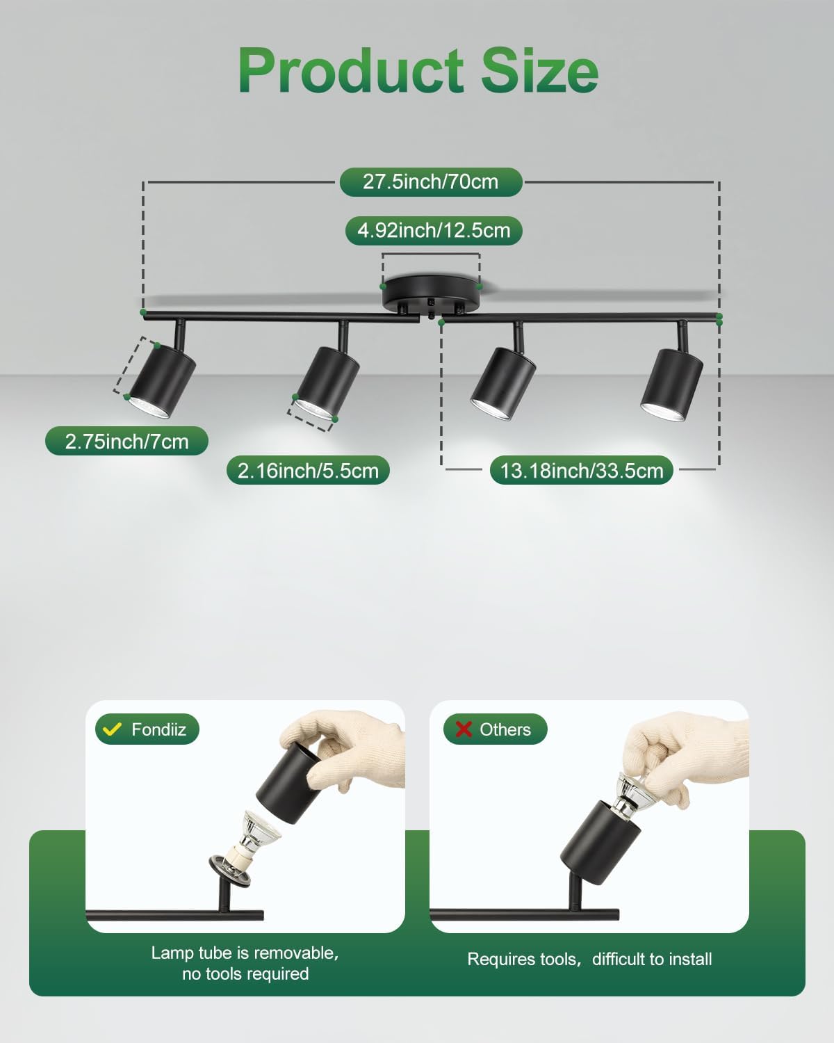 Tubo de lámpara extraíble: nuestra iluminación de riel de cocina puede desmontar el tubo de la lámpara girándolo, y puede instalar la bombilla GU10 con mayor precisión sin una ventosa, lo que te proporciona una experiencia más cómoda y fácil de usar