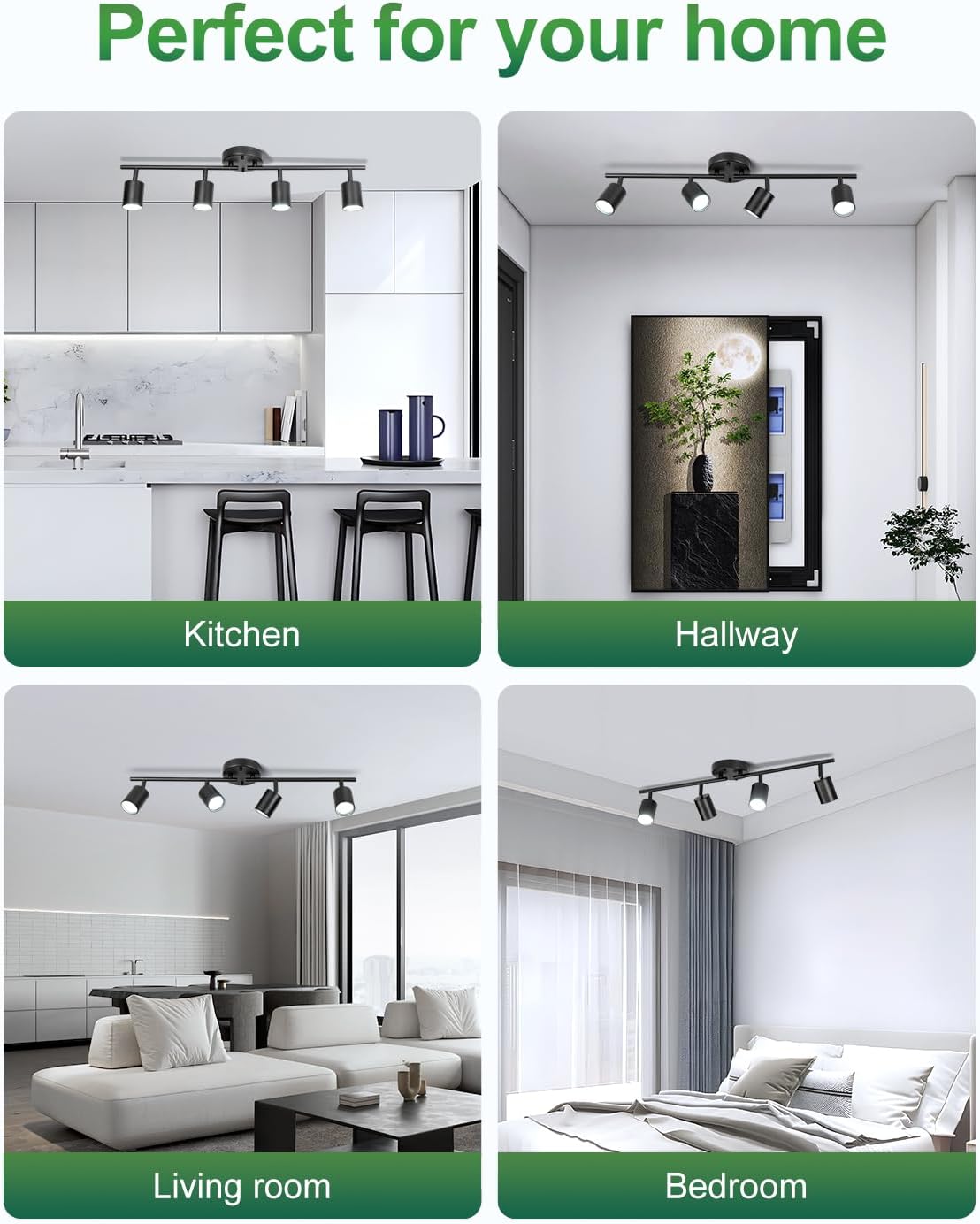 Amplia aplicación: esta iluminación de riel de montaje en pared no solo se puede utilizar como luz de pista para iluminación diaria, sino que también proporciona iluminación para murales o espejos. Es muy adecuado para su uso en cocinas, salas de estar, dormitorios y pasillos