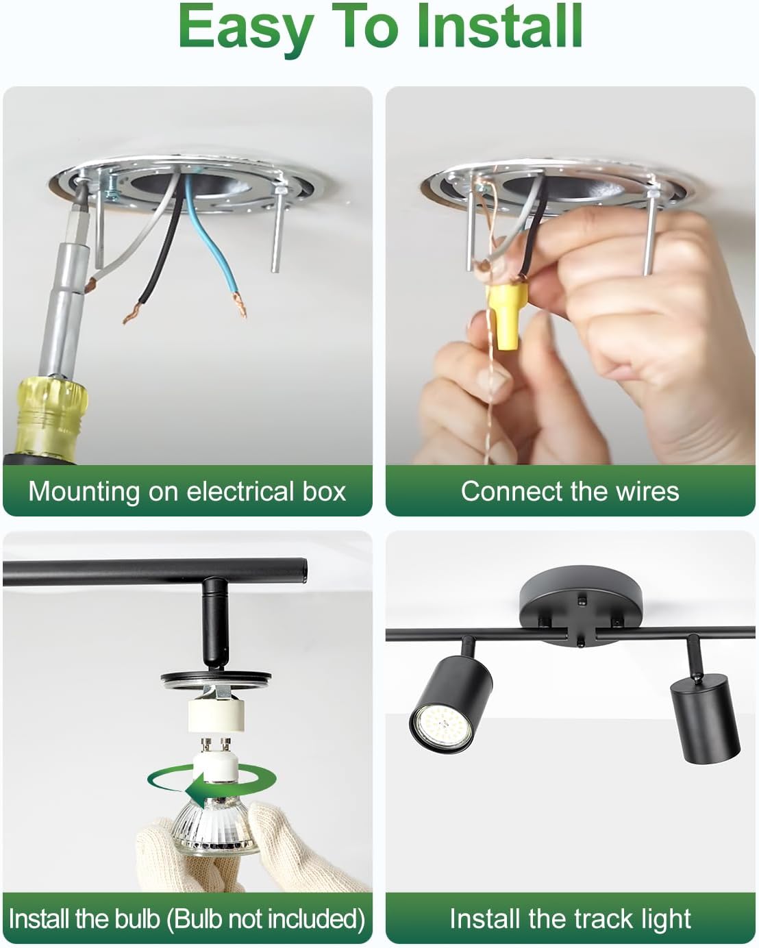 Enchufe GU10: Este techo de luces de riel adopta el zócalo GU10 (excluyendo las bombillas), que es adecuado para la mayoría de las bombillas GU10. La potencia máxima de la bombilla no supera los 50 W. Puedes elegir el tipo de bombilla GU10 para satisfacer diferentes necesidades