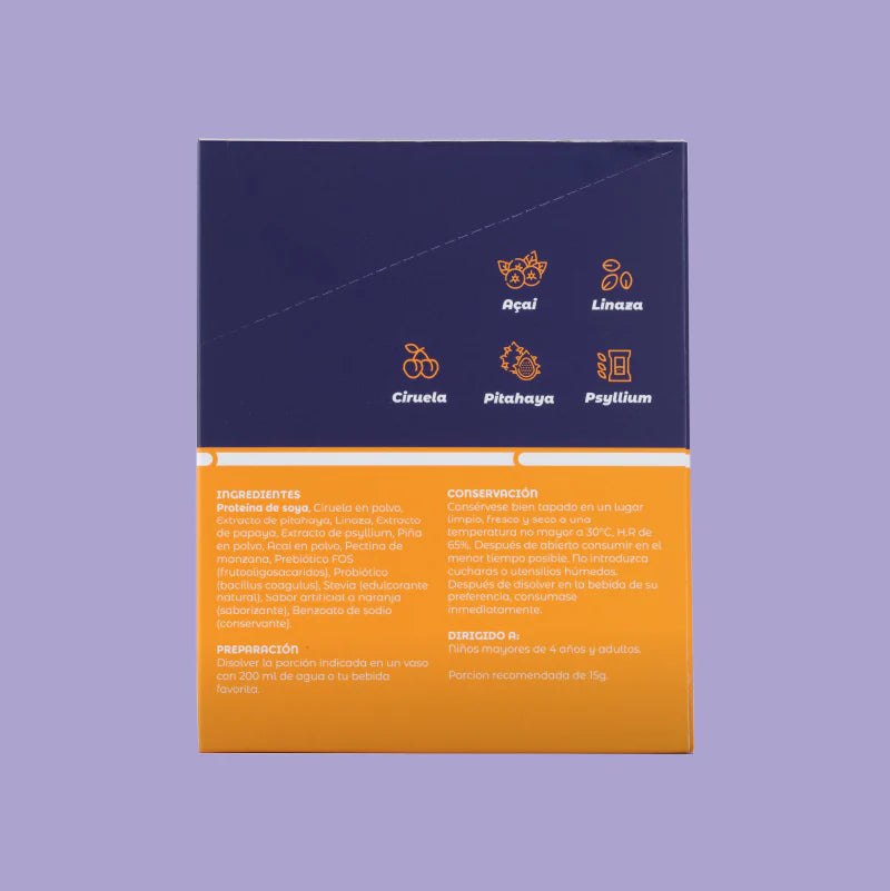 Nuestra Fibra con prebióticos y probióticos combina frutas, linaza y psyllium para favorecer una digestión saludable y equilibrar tu microbiota.