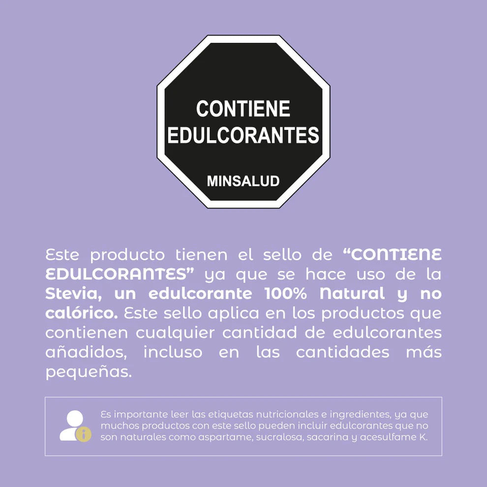 - Sin azúcar (endulzado con Stevia 100% natural).