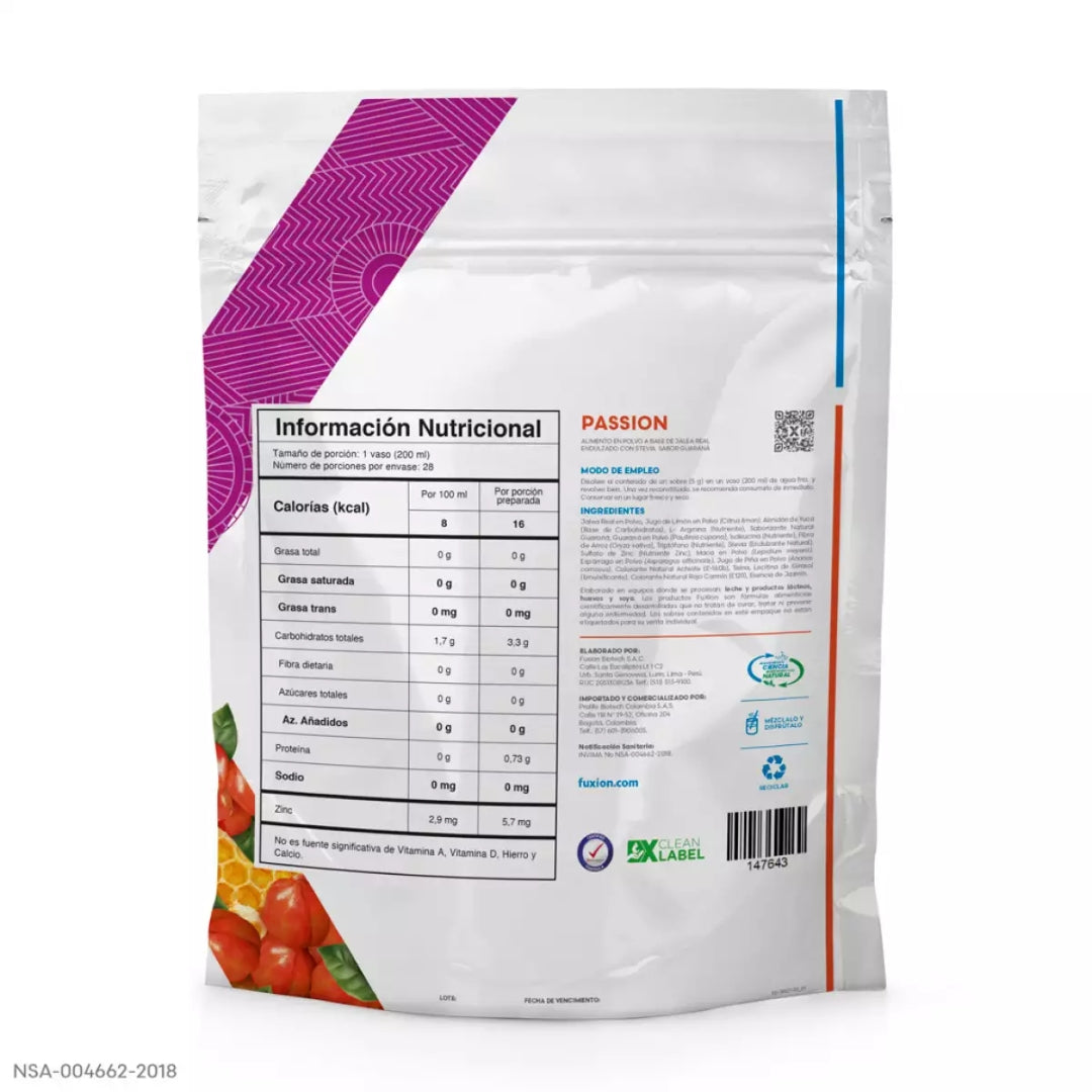 PASSION de FuXion es una deliciosa bebida nutracéutica en polvo, formulada con Guaraná, Jalea Real, Maca, Ginseng, L-Arginina y Zinc, diseñada para apoyar el vigor, la energía, la líbido y el equilibrio hormonal de manera natural.