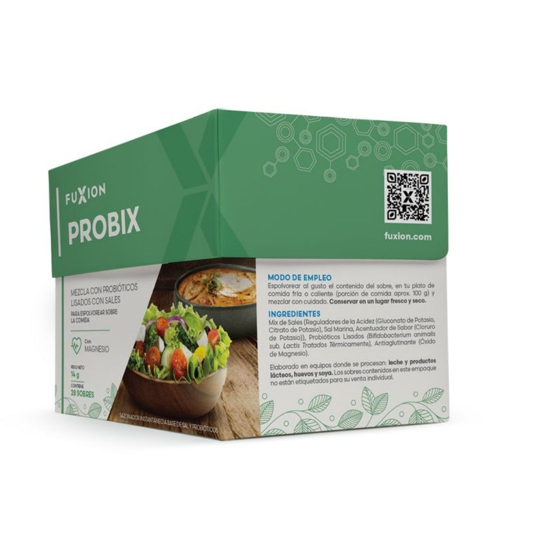 Probix Fuxion es un suplemento funcional diseñado para apoyar el equilibrio digestivo y electrolítico del organismo. Su fórmula combina sales minerales con probióticos lisados, ideal para personas activas o con rutinas exigentes.