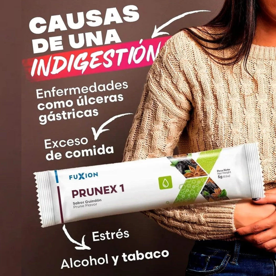 PRUNEX de Fuxion es una bebida frutal en polvo elaborada a base de un mix de fibras solubles naturales, extracto de guindones y componentes botánicos cuidadosamente seleccionados. Está endulzada con Stevia y ofrece un agradable sabor guindón, ideal para apoyar de forma natural el bienestar digestivo y el equilibrio intestinal.
