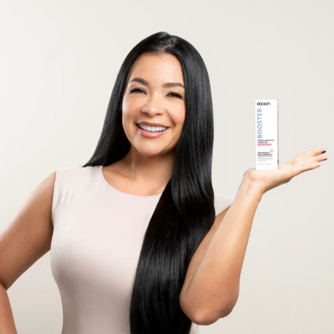 Booster es el tratamiento todo-en-uno que tu cabello necesita para hidratar, fortalecer y proteger en un solo paso. Su avanzada tecnología de lípidos, combinada con ácido hialurónico, permite que los ingredientes activos penetren profundamente, maximizando la absorción de nutrientes y ofreciendo resultados visibles en solo 2 minutos.